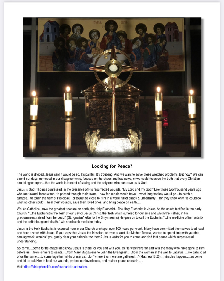 Communications regarding Eucharistic adoration will be done through Flocknote.